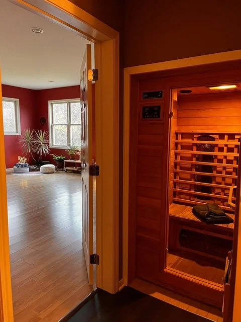 Our studio also features a full kitchen and a private bathroom equipped with an infrared sauna. Students are invited to schedule sauna sessions after class—a wonderful way to restore muscles, release tension, and deepen your wellness routine.