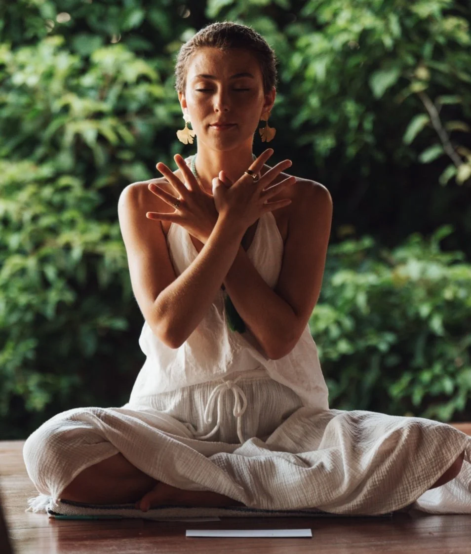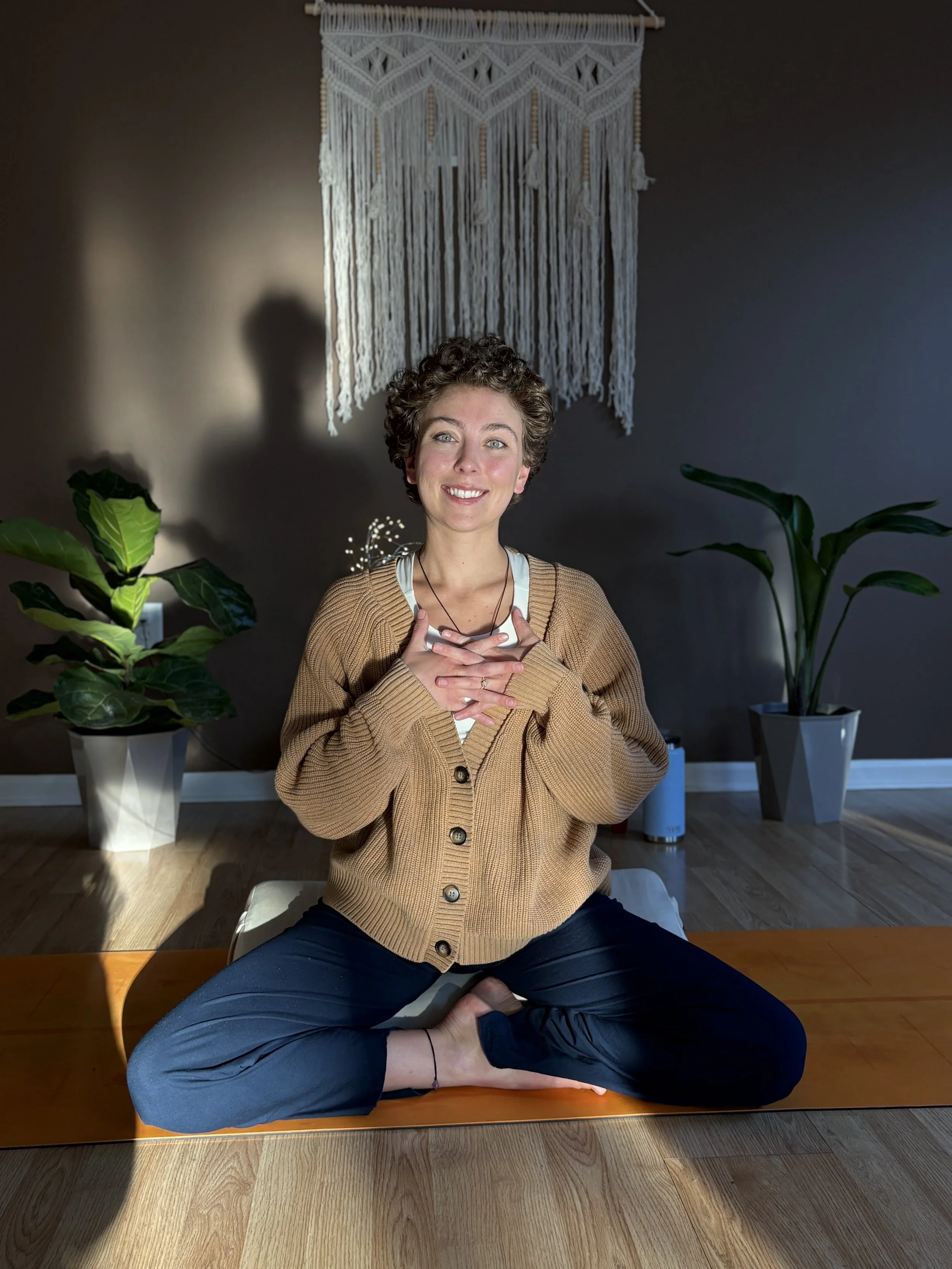 first turning to it during pregnancy as a way to feel at home in her changing body and find emotional grounding—especially during the isolation of Covid. Stepping onto her mat continues to feel like a homecoming, a compass, and a place of refuge.